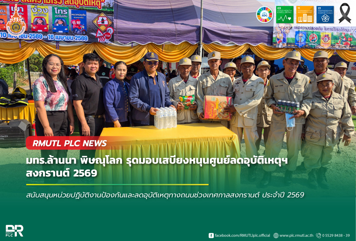 มทร.ล้านนา พิษณุโลก ลงพื้นที่สนับสนุนหน่วยป้องกันอุบัติเหตุทางถนนช่วงเทศกาลสงกรานต์ 2569